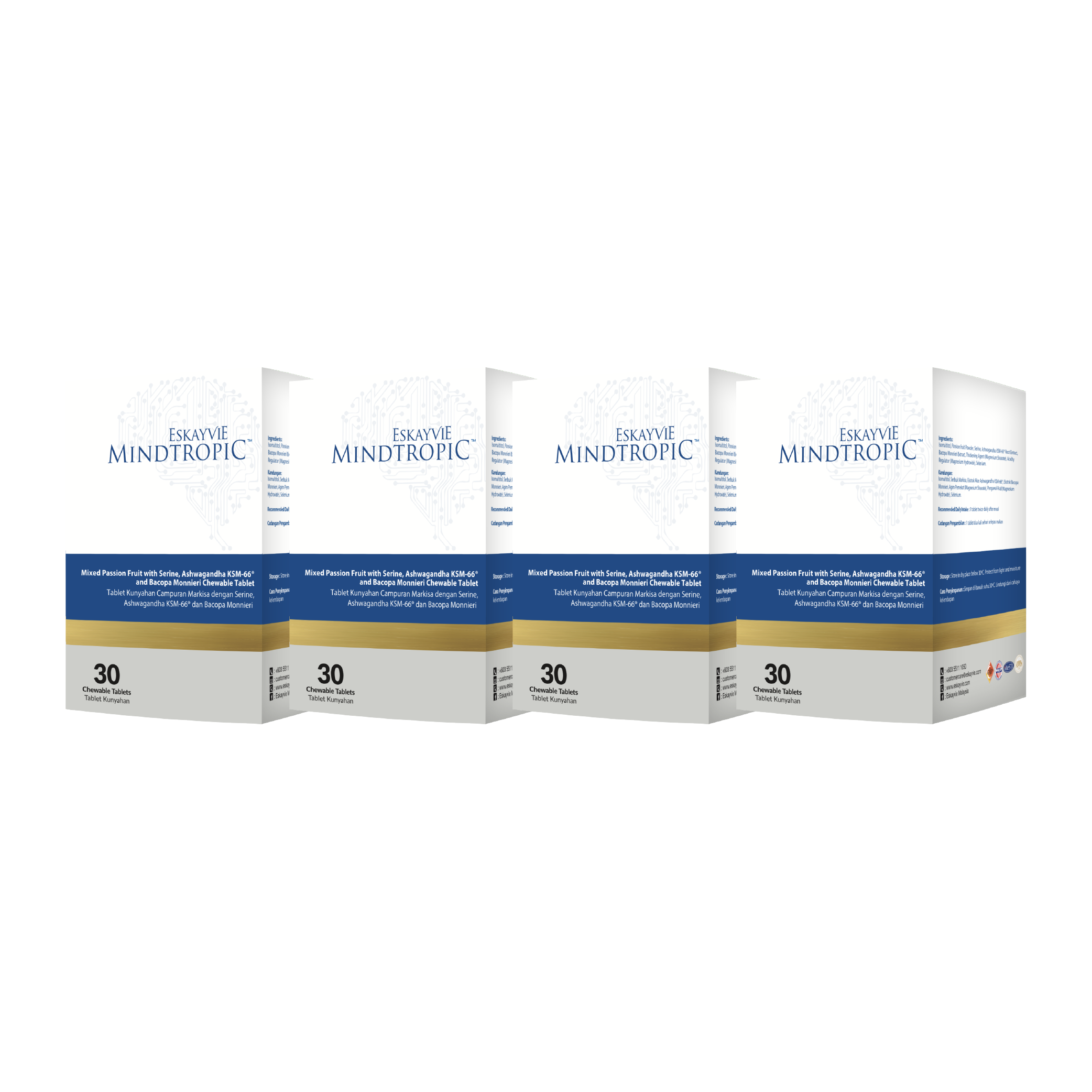 Eskayvie Mindtropic adalah tablet kunyahan berperisa tropika yang lazat dan diperkaya Phosphatidylserine, Ashwagandha KSM-66, Bacopa Monnieri, Selenium dan Magnesium yang membantu menguatkan memori, memperbaiki mood dan tidur serta melegakan stres.